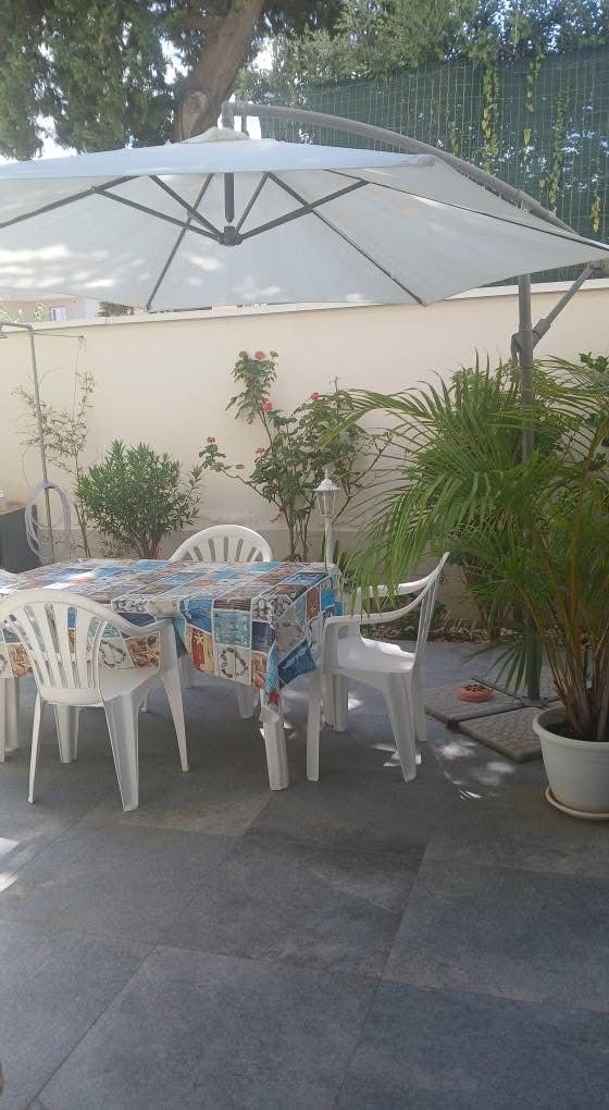 L'ambiente esterno si presenta come una vera e propria oasi di tranquillità, una gradevole sensazione dominante di fresco e serenità. L'area è arredata per il relax e la convivialità corredato con un tavolo da pranzo esterno domina lo spazio centrale, invitando a lunghe cene estive.